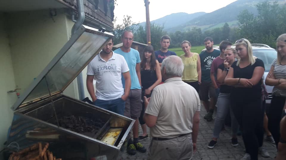 Die dritte und somit letzte Agrarexkursion für diesen Sommer führte uns zu der Imkerei Pilz in Öblarn. Dabei trafen sich am 21. August einige Landjugendliche um mehr über diese kleinen fleißigen Tierchen zu erfahren. Dabei erklärte der Imker Ludwig Pilz uns alles Wissenswerte über die Bienen und die Imkerei. Dabei wurden alle Themen wie die Grundlagen der Bienen und eines Volkes bis hin zur Sammlung und Gewinnung des Honigs erklärt. Auch die Frage, wie der heißbegehrte Met gewonnen wird wurde erklärt. Da kann man schon mal staunen, was alles in diesen kleinen, intelligenten Insekten steckt. Nach dieser lehrreichen Exkursion ließen wir unseren Exkursionssommer anschließend im Gasthof Stralz`n bei gemütlichen Beisammensein ausklingen.