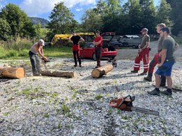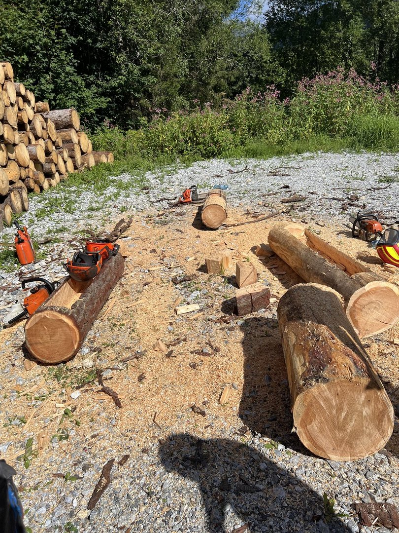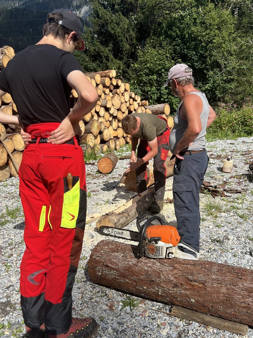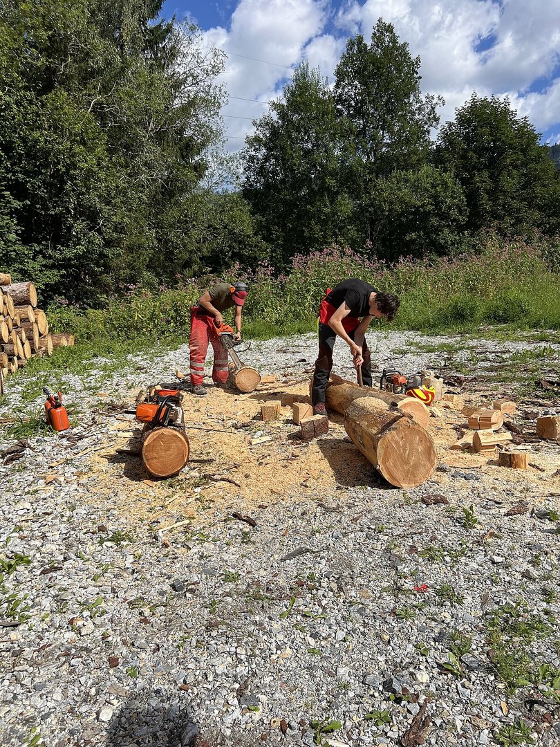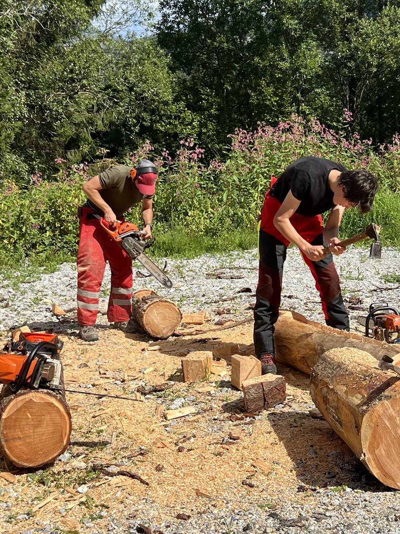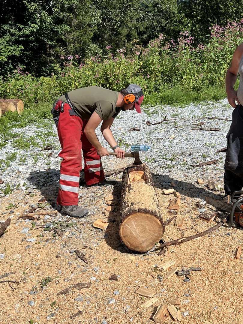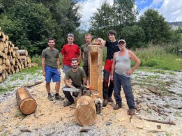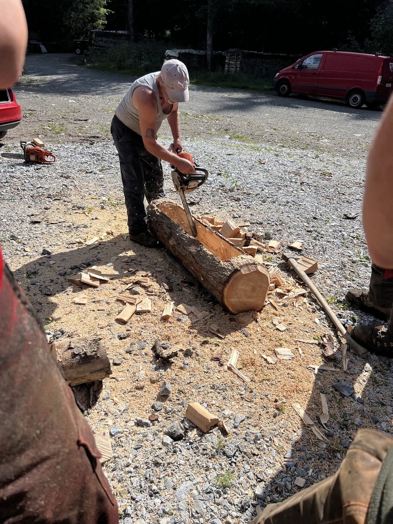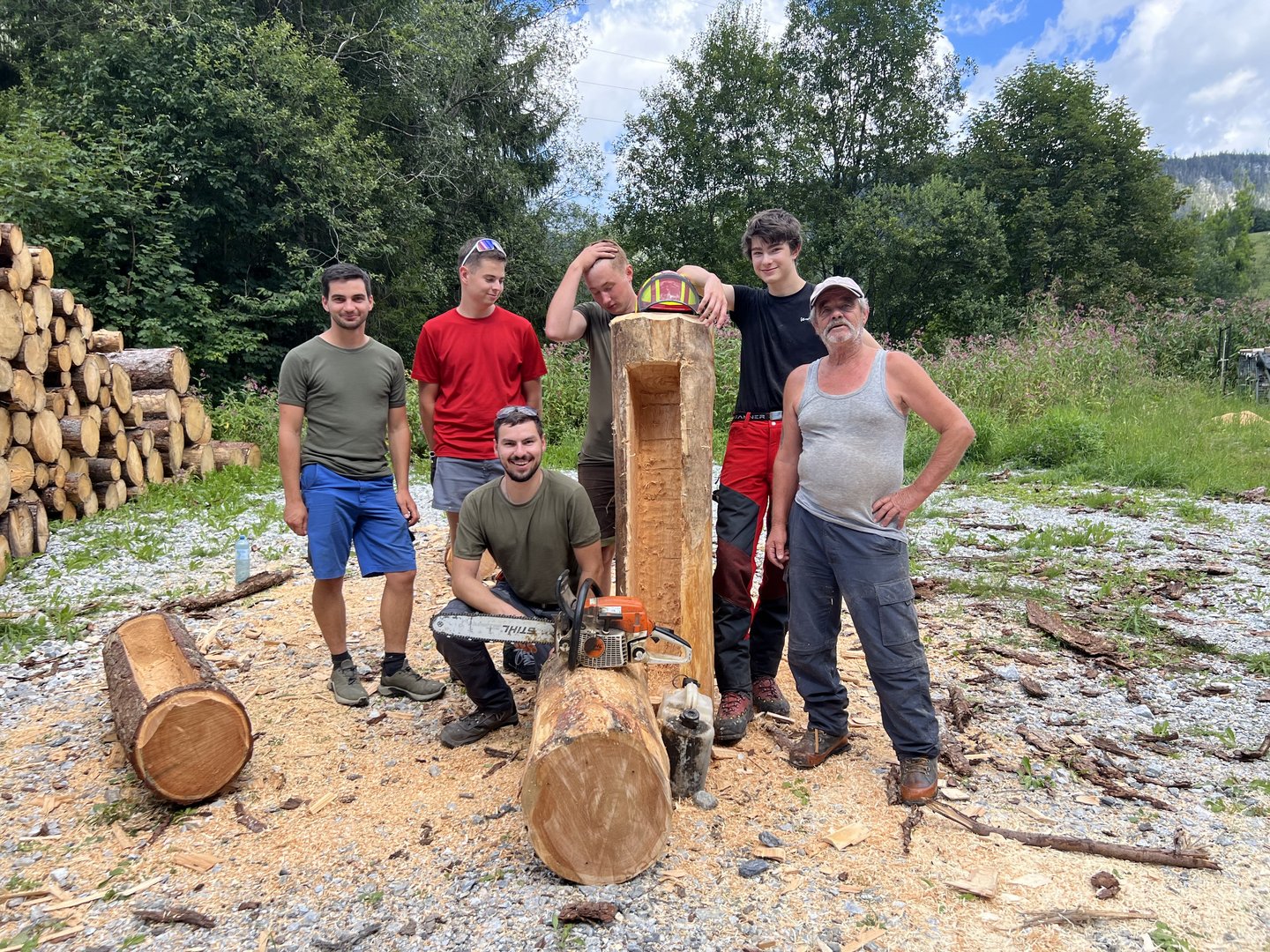 Am 10.08.2024 trafen sich fünf Mitglieder des Landjugendbezirkes Liezen bei der Freiwilligen Feuerwehr Pyhrn um das schnitzen eines Brunntrogs zu erlernen.