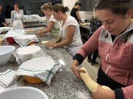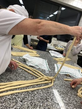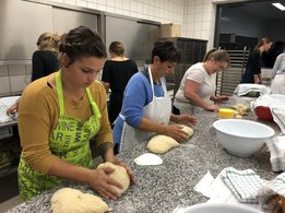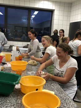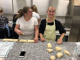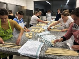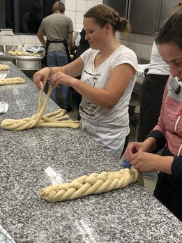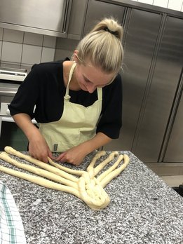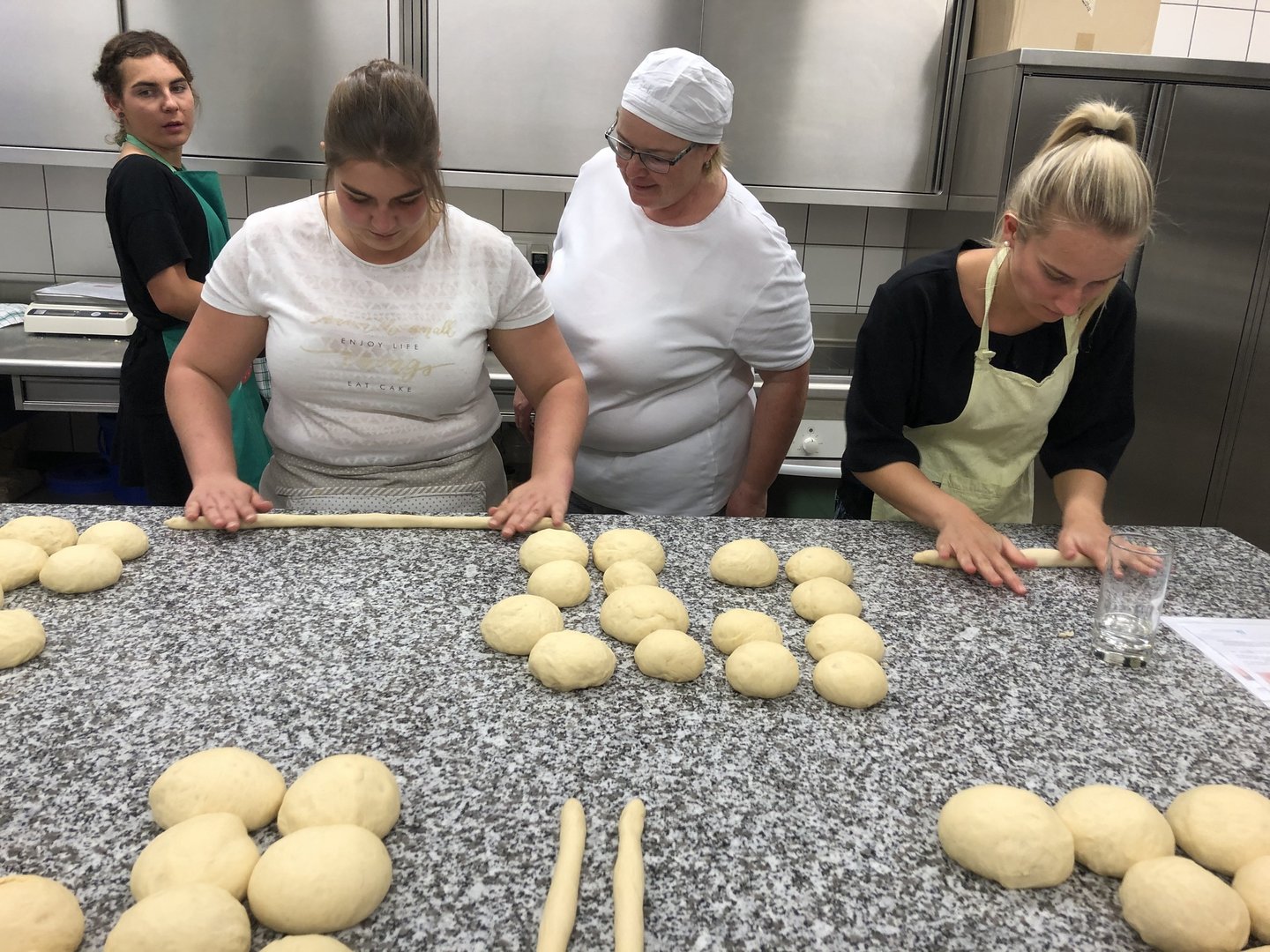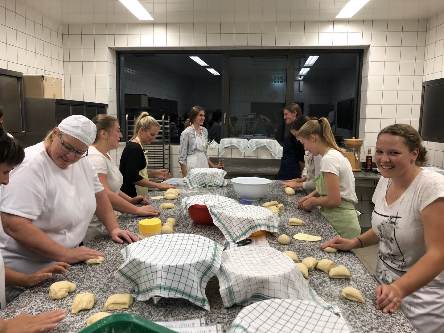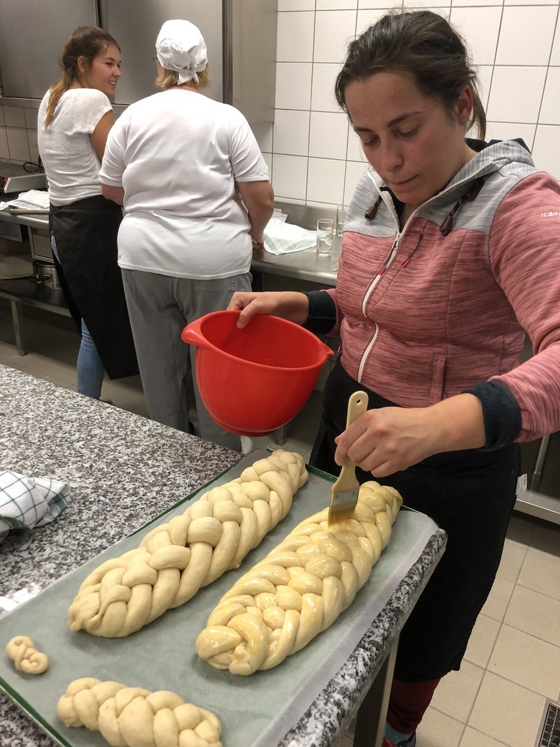 Passend vor Allerheiligen veranstalteten wir in der FS Gröbming einen Allerheiligenstriezel-Backkurs. Mit großem Interesse wurde der Teig gefertigt um anschließend schöne Striezel daraus zu flechten. Dabei übte sich nicht nur die weibliche Seite der Landjugend. Auch die Männer versuchten sich in der großen Kunst des Striezel-Flechtens. Das Ergebnis kann sich sehen lassen. Wunderschöne und leckere Striezel wurden geflochten und gebacken. Der Brauch hat seine Wurzeln in der antiken Trauerkultur. Als Zeichen des Mitgefühls, schnitten sich damals die Menschen ihre geflochtenen Haare ab. Das geflochtene Gebäck soll symbolisch dafür stehen. Im Mittelalter war es selbstverständlich an Allerheiligen, jene mit Striezel zu beschenken, die noch weniger hatten. Noch heute beschenkt die Godi ihre Godnkinder mit einem selbstgebackenen Striezel.