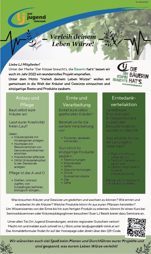- Teil 3: Die Landjugend Steiermark bildet den größten Chor, den die Landjugend je gesehen hat. Zwei Konzerte werden veranstaltet und es wird für den guten Zweck gesungen. Hier folgt noch eine gesonderte Ausschreibung.
