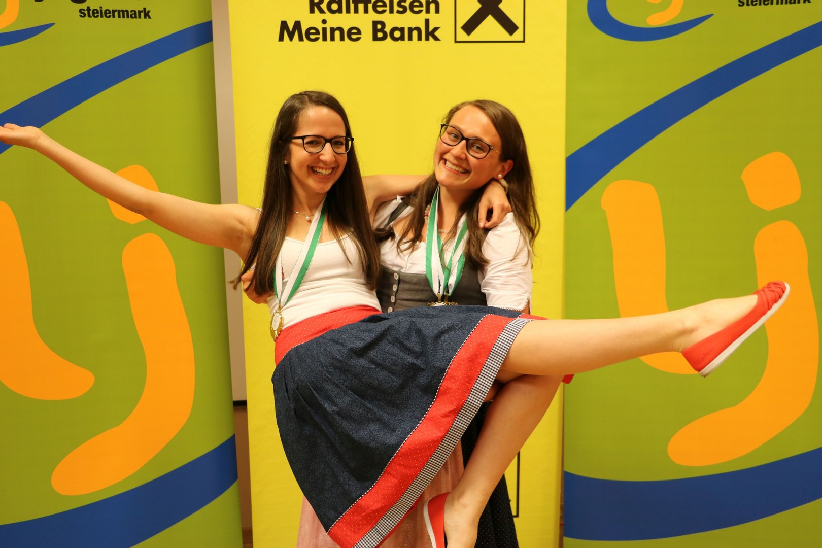 Kreativitätsgold ging in den Austragungsbezirk. Simone Köberl und Melanie Oswald aus dem LJ Bezirk Liezen holten sich mit ihrer Darbietung zum Thema „Des wos zöht“ den ersten Platz. Platz zwei ging an das Team aus dem LJ Bezirk Hartberg mit Magdalena Allmer, Andreas Hofer, Peter Windhaber und Lisa Zink zum Thema „Österreich facettenreich-genial“. Platz drei holten sich die Murauer Sarah Präsent, Kerstin Strasser, Christoph Wieland und Florian Ofner zum Thema „Religionen“.