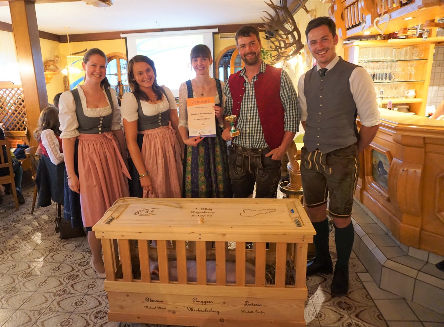 Spannung bis zum Schluss bot schließlich die Bekanntgabe des Siegers des diesjährigen Bezirkscups. Jedes Ortsgruppenmitglied erhält für die Teilnahme an Bezirksveranstaltungen Punkte, die am Ende jedes Landjugendjahres zusammengezählt werden. So wird der Sieger des Bezirkscups ermittelt. Dieses Jahr konnte sich die Ortsgruppe Pruggern-Michaelerberg nicht nur den Sieg sichern, sondern auch ein zukünftiges Spanferkel. Auf den Plätzen 2 und 3 folgten die Vorjahressieger der OG Öblarn sowie die OG Lassing.