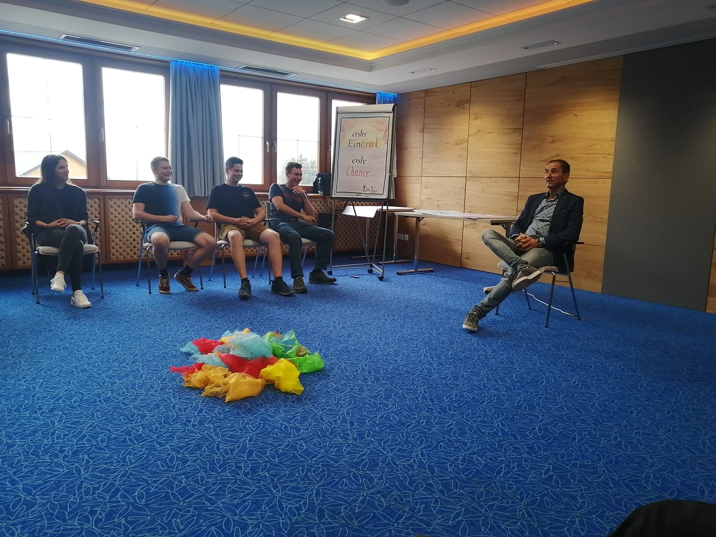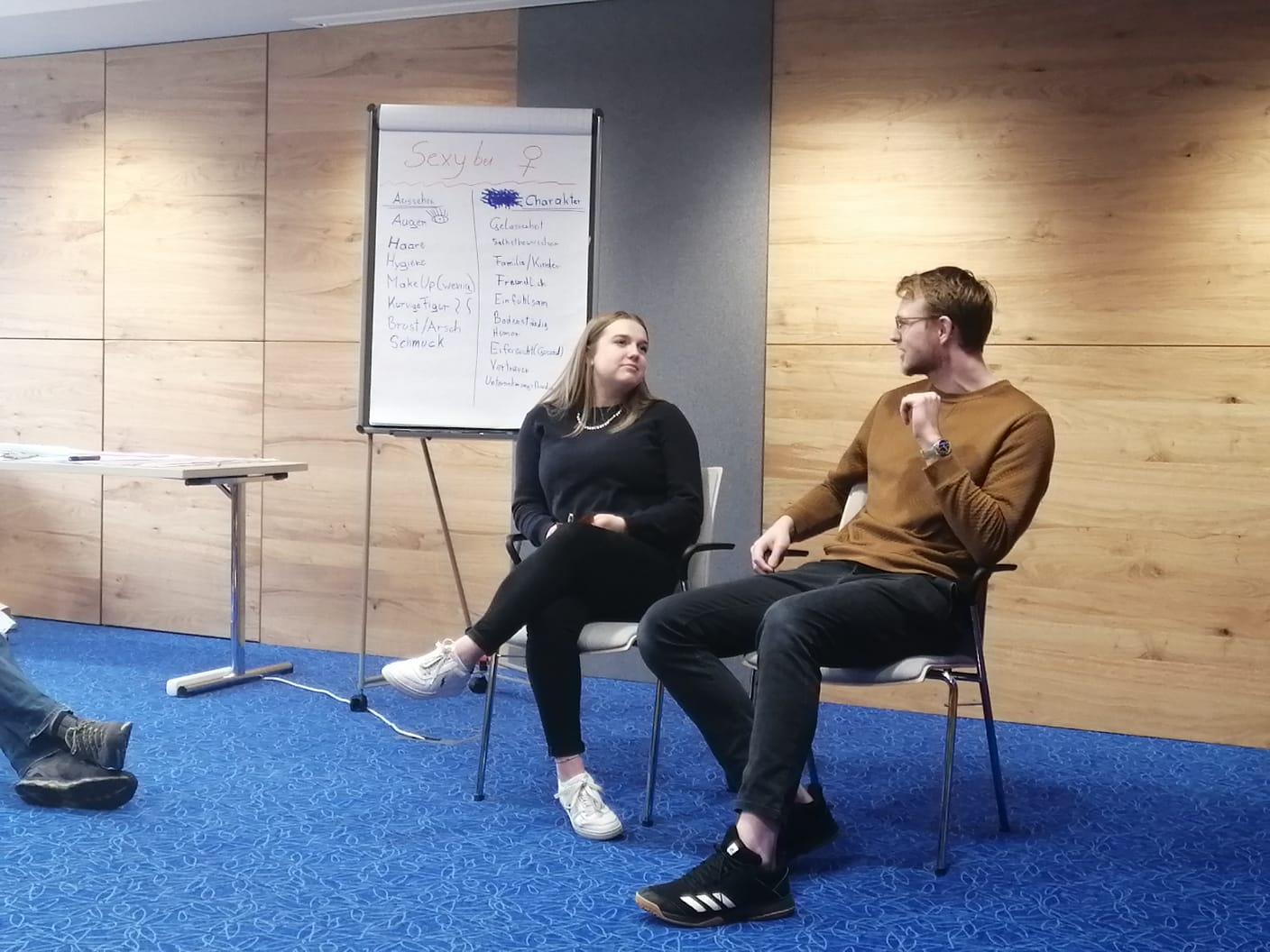 Antworten auf genau diese Frage bekamen wir am Samstag, den 2.4. von Josef Moser, besser bekannt als MOJO. Zu Beginn beschäftigten wir uns mit den Vorzügen, Vorstellungen und Anziehungskräften bei Mann und Frau. Damit man sich gelassen auf jemanden einlassen kann, ist es jedoch wichtig, sich vorher selbst zu kennen. Hierzu haben wir bei einer kurzen Übung gelernt uns selbst wertzuschätzen. Nach der Mittagspause konnten wir bei praktischen Übungen unsere Flirtkünste unter Beweis stellen. In ganz alltäglichen nachgestellten Situationen wurde probiert jemanden „anzuflirten“ und danach ins Gespräch zu kommen, hierbei versorgte uns MOJO mit Tipps und Tricks rund um Körpersprache und Gesprächseinstiege.
